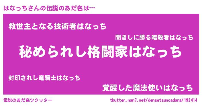 | ヒーロー風カッコイイあだ名 | 『ウルトラはなっちマン』『仮面ハナダー』 |