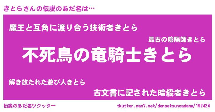 | 意味不明あだ名 | 『住所不定無職きとら(7歳)』 |