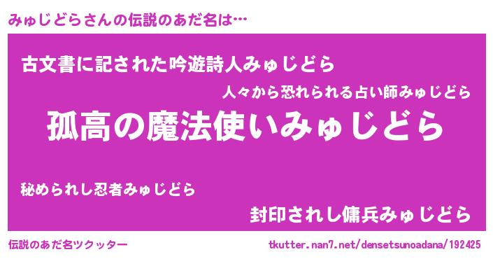 | 意味不明あだ名 | 『とにかく怪しいみゅじどら』 |