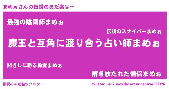 | 意味不明あだ名 | 『眠気覚ましガムまめぉ味』『自称まめぉ』 |
