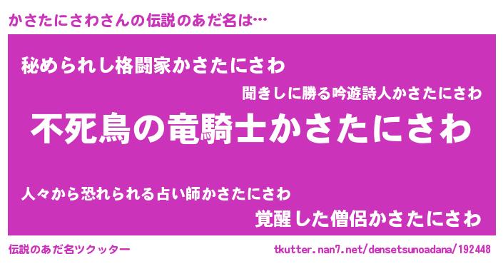 | 胡散臭い通販商品みたいなあだ名 | 『モテモテ間違いなしブレスレット…その名も「かさたにさわ」』 |