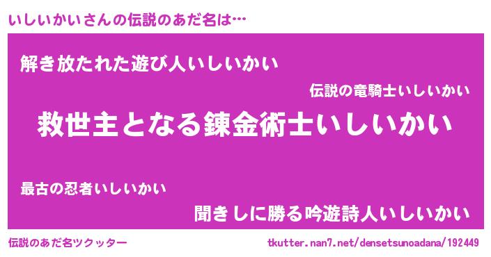 | ファンタジー風あだ名 | 『クインイット』『ファントムイシス』 |