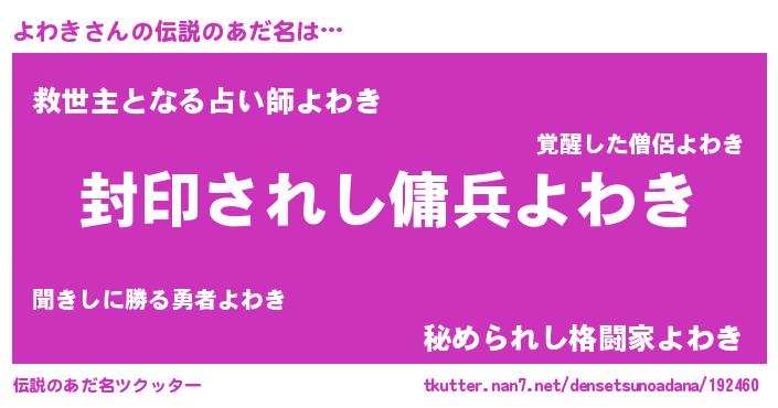 | ポケモン風あだ名 | 『ヨワゴンZ』『ヨワチュウ』 |