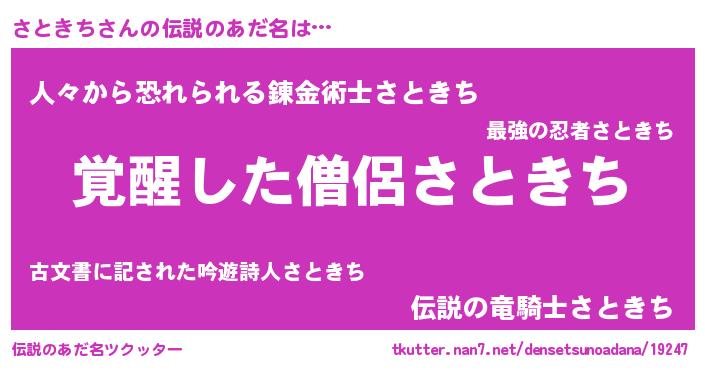 | 意味不明あだ名 | 『自称さときち』『エリンギ科さときち属』 |