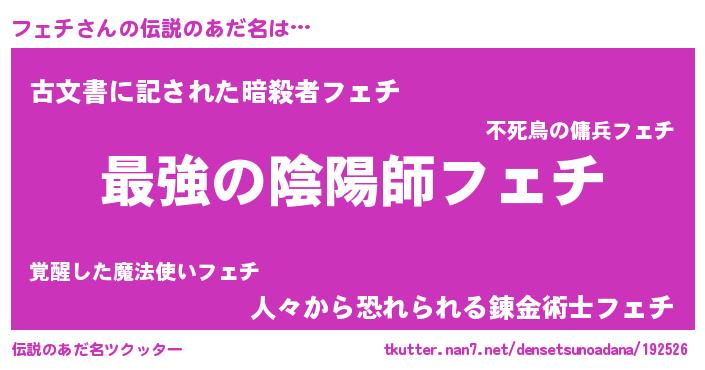 | ファンタジー風あだ名 | 『エターナルフェチー』『カークフェラー』 |