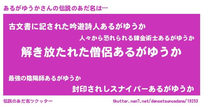 意味不明あだ名 | 『とにかく怪しいあるがゆうか』 |