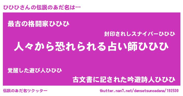 | ヒーロー風カッコイイあだ名 | 『友情の使者ひひひ』『ネオヒヒヒ』 |