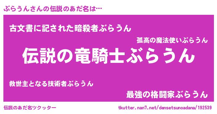| 意味不明あだ名 | 『しいたけ科ぶらうん属』『自称ぶらうん』 |