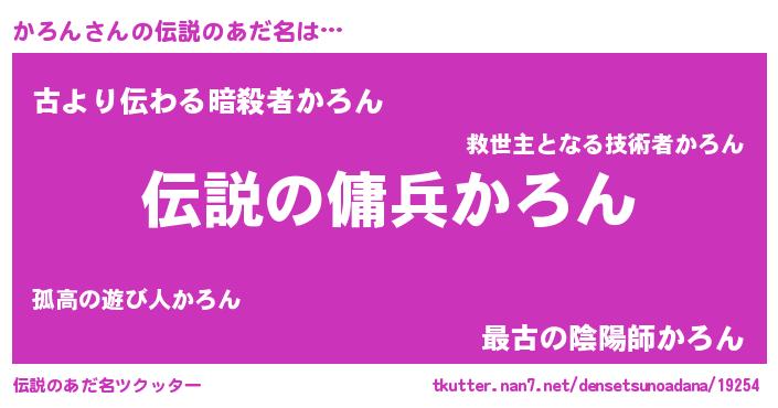 | 意味不明あだ名 | 『住所不定無職かろん(14歳)』 |