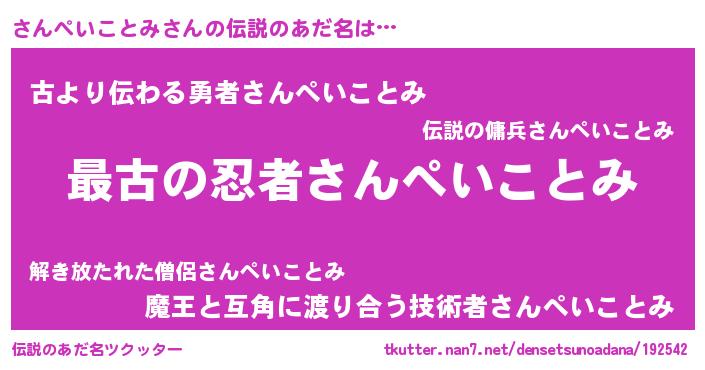 | 意味不明あだ名 | 『さんぺいことみフォーエバー』 |