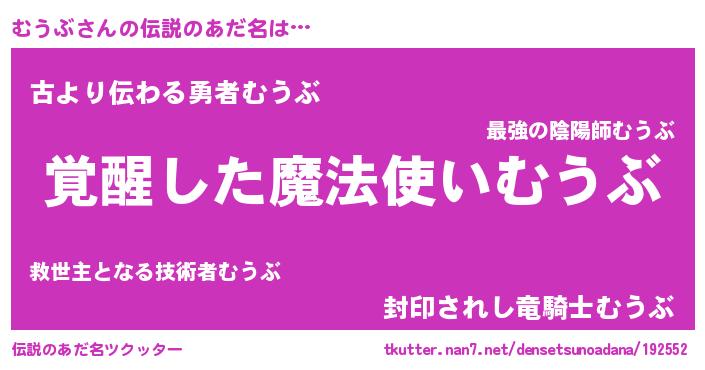 | 意味不明あだ名 | 『とにかく怪しいむうぶ』『自称むうぶ』 |