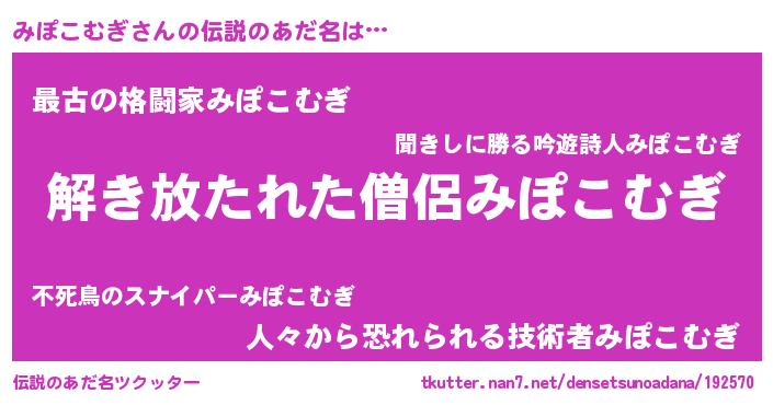 | 意味不明あだ名 | 『とにかく怪しいみぽこむぎ』 |
