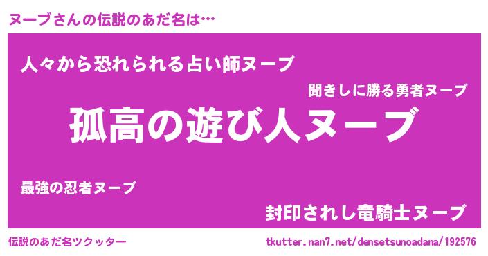 | 意味不明あだ名 | 『とにかく怪しいヌーブ』『自称ヌーブ』 |
