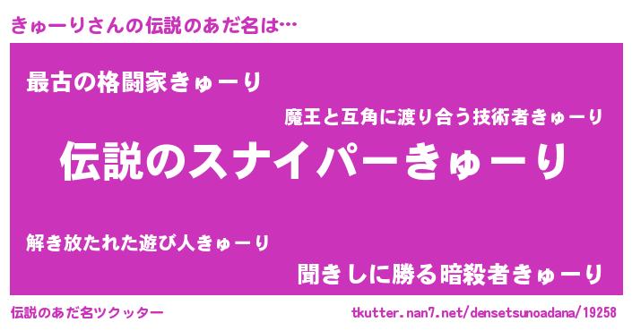 | 胡散臭い通販商品みたいなあだ名 | 『必ず成功する霊験あらたかなお札…その名も「きゅーり」』 |