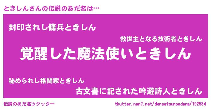 | ヒーロー風カッコイイあだ名 | 『幻影騎士トキ』『究極戦士トキシン』 |