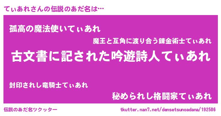 | 意味不明あだ名 | 『ヨモギ科てぃあれ属』 |
