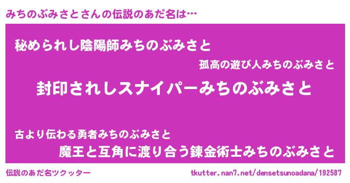 | 意味不明あだ名 | 『自称みちのぶみさと』 |