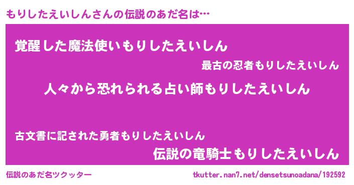 | 男性向けラノベタイトル風あだ名 | 『モリシタエイシンスレイヤー』 |