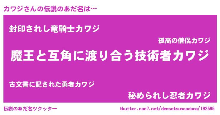 | 意味不明あだ名 | 『眠気覚ましガムカワジ味』『自称カワジ』 |