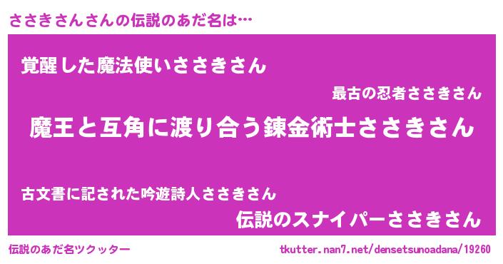| 女子向けラノベタイトル風あだ名 | 『ささきさん恋絵巻』『闇のささきさん』 |