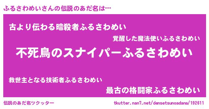 | 胡散臭い通販商品みたいなあだ名 | 『世界中を虜にした世界で10本だけ現存している希少なブランデー…その名も「ふるさわめい」』 |