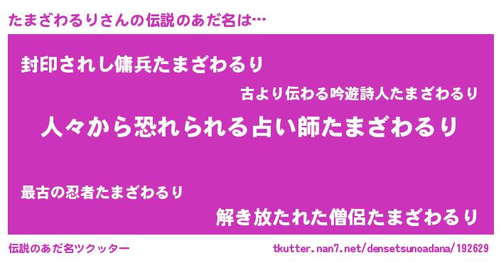 | 意味不明あだ名 | 『自称たまざわるり』 |