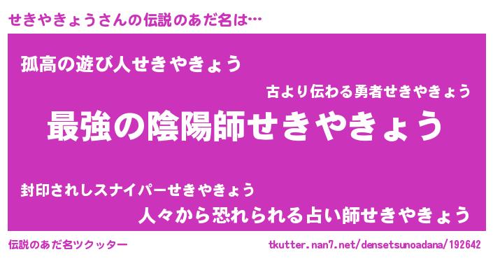| ヒーロー風カッコイイあだ名 | 『ウルトラせきやきょうマン』 |