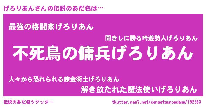 | 意味不明あだ名 | 『ペロリンげろりあん』『自称げろりあん』 |