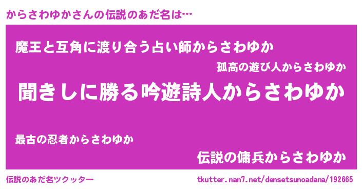 | ヘコむあだ名 | 『からさわゆか(笑)』『からもー』 |