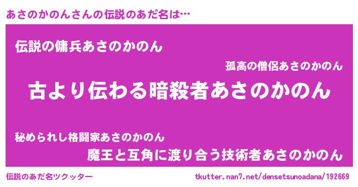 | 意味不明あだ名 | 『自称あさのかのん』 |