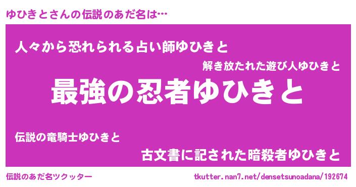 | 男性向けラノベタイトル風あだ名 | 『ゆひきと~年齢イコール彼女いない歴の魔法使い~』 |