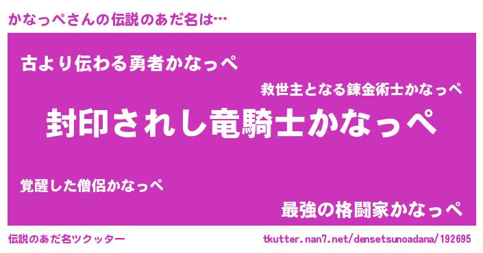 | ファンタジー風あだ名 | 『カークカナラー』『カナフェル』 |