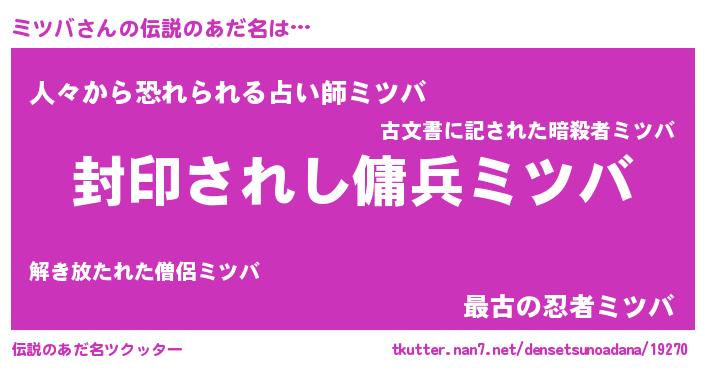 | 意味不明あだ名 | 『住所不定無職ミツバ(43歳)』 |