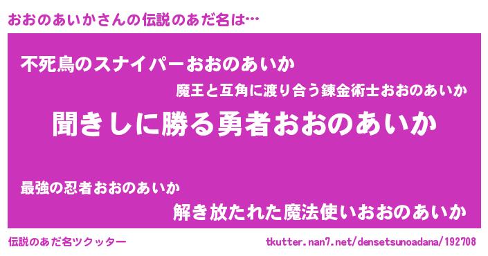 | 意味不明あだ名 | 『永久保存おおのあいか』 |