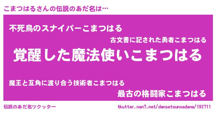 | ヒーロー風カッコイイあだ名 | 『幻影騎士コマ』『スーパーコマツハル』 |