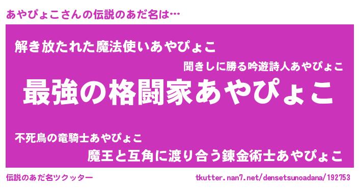 | 意味不明あだ名 | 『あやぴょこフォーエバー』 |