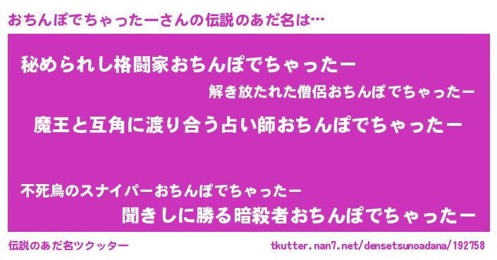 | ヒーロー風カッコイイあだ名 | 『愛の使者おちんぽでちゃったー』 |