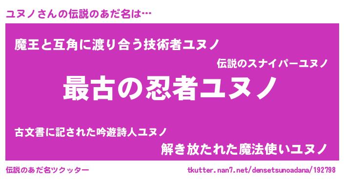 | ヒーロー風カッコイイあだ名 | 『ウルトラ戦士ユヌノ』『愛の使者ユヌノ』 |