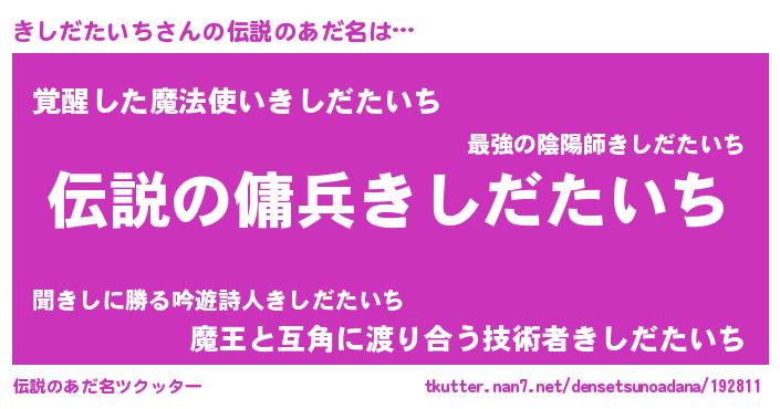 | ヒーロー風カッコイイあだ名 | 『仮面キシダー』『スーパーキシダタイチ』 |
