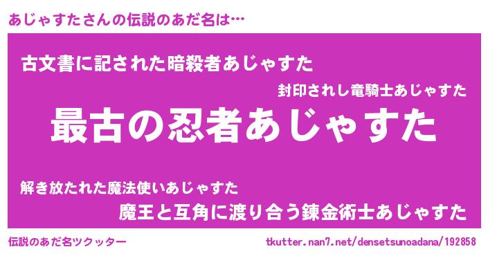| 意味不明あだ名 | 『自称あじゃすた』『永久保存あじゃすた』 |