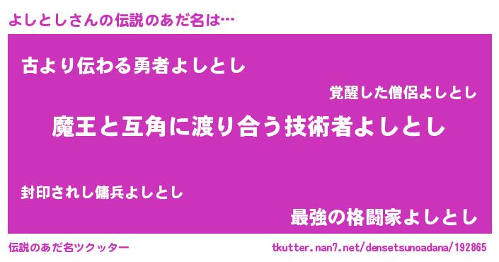 | 意味不明あだ名 | 『住所不定無職よしとし(13歳)』 |