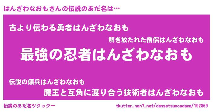 | 意味不明あだ名 | 『はんざわなおもフォーエバー』 |