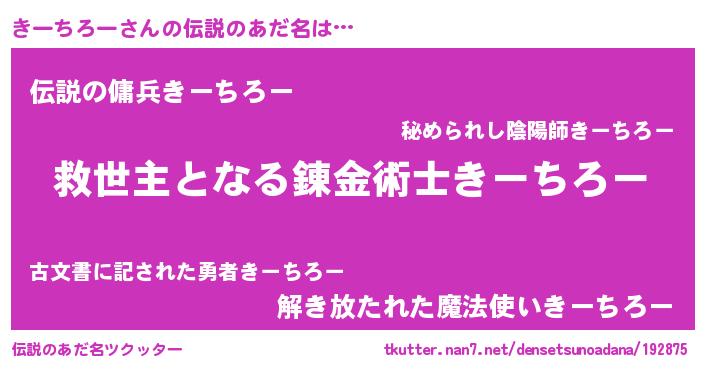 | ヒーロー風カッコイイあだ名 | 『天空の使者きーちろー』『仮面キーダー』 |