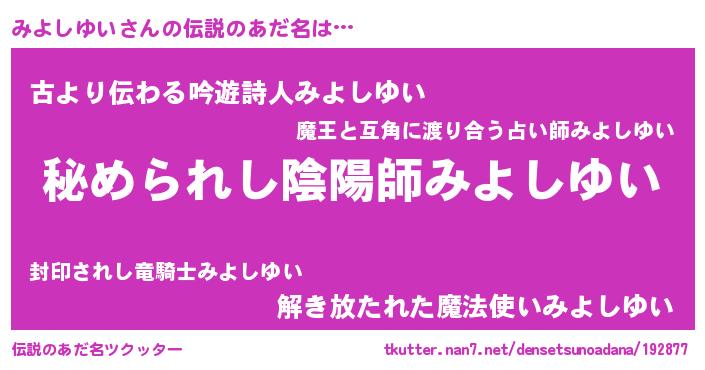 | ファンタジー風あだ名 | 『エターナルミヨシユイー』 |
