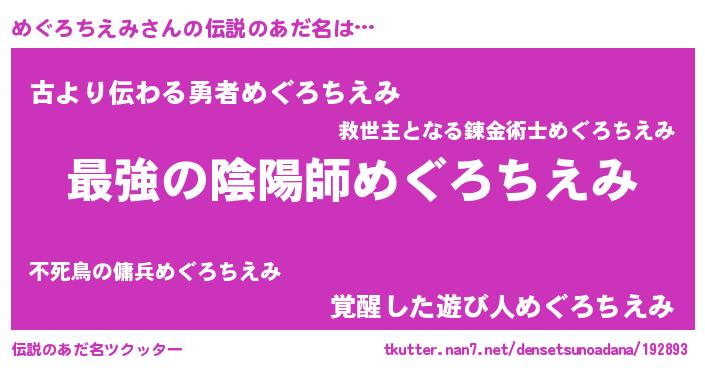 | 意味不明あだ名 | 『めぐろちえみフォーエバー』 |