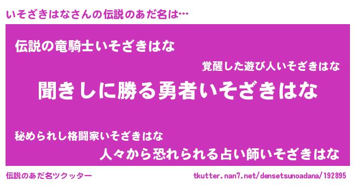 | 可愛いあだ名 | 『いそざきはなママ』『いんいん』 |