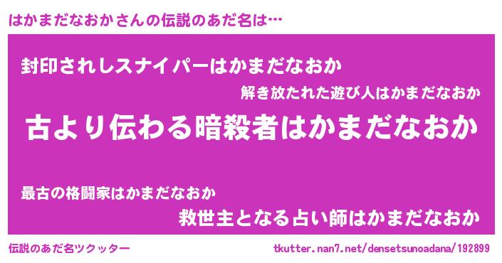 | 胡散臭い通販商品みたいなあだ名 | 『来世でも幸せになれる健康食品…その名も「はかまだなおか」』 |