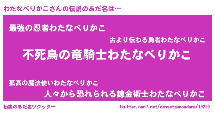 | 男性向けラノベタイトル風あだ名 | 『わたなべりかこに滅ぼされるだけの簡単なお仕事です』 |