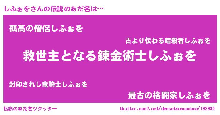 | ヒーロー風カッコイイあだ名 | 『慈愛の使者しふぉを』『暗黒騎士シフ』 |