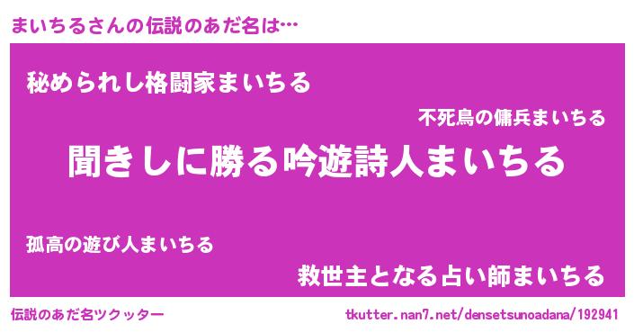 | 意味不明あだ名 | 『永久保存まいちる』『自称まいちる』 |